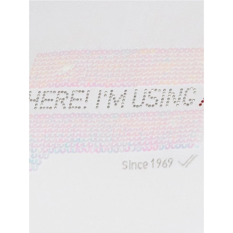 The wording on this shirt in sequins is. ( Hey There I’m Using Animo )Â