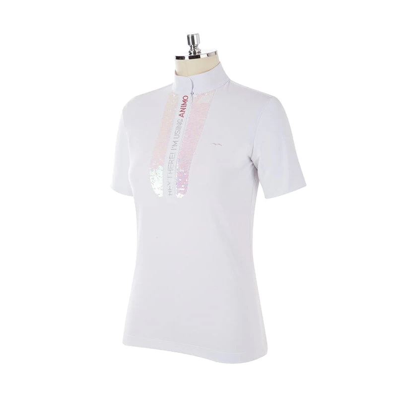 This Animo bezzy shirt has a wow factor about it. Sequin’s on the front detail with a zip opening. Beautiful lightweight material is great in the summer weather.Â