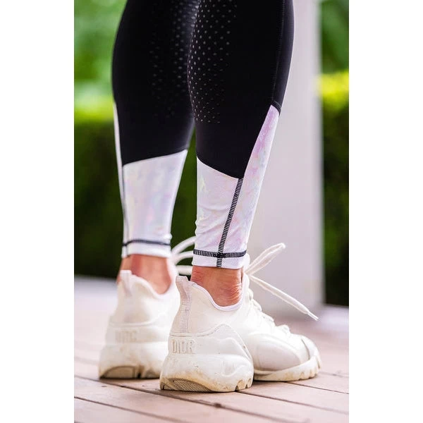 Our performance tights feature a full seat of silicone grip, light compression performance fabric, moisture-wicking technology to keep you fresh, and four-way stretch for a superior fit. The figure-flattering high and wide waistband and phone pocket make these tights perfect for all equestrian disciplines. The high-quality performance fabric is perfect for any weather, and the style is flattering on all shapes and sizes.