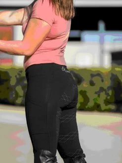 Our horse riding tights are beautiful to wear in the saddle, the gym, or just for everyday! Experience unrestricted stretch and ultimate comfort with these tights that you won’t want to take off. Made with specially designed athletic fabric, these tights promote stretch and breathability to keep you cool and comfortable. The wide elastic waistband ensures a secure and comfortable fit.