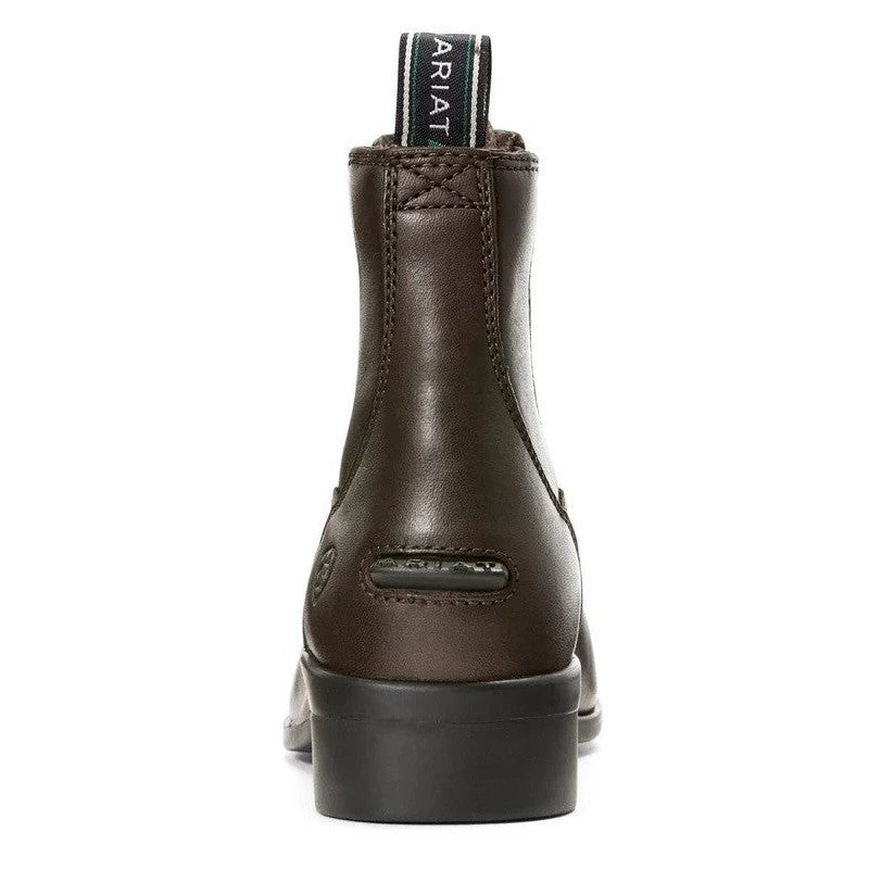 Full grain leather is used for the Devon IV paddock boot, which is known for its exceptional comfort, stability and durability, as well as its beautiful appearance. Breathability is further enhanced by the moisture wicking lining. This boot features an antiqued brass zipper and elastic gore for an easy on/off, as well as removable Wiggle Room footbeds for young athletes.