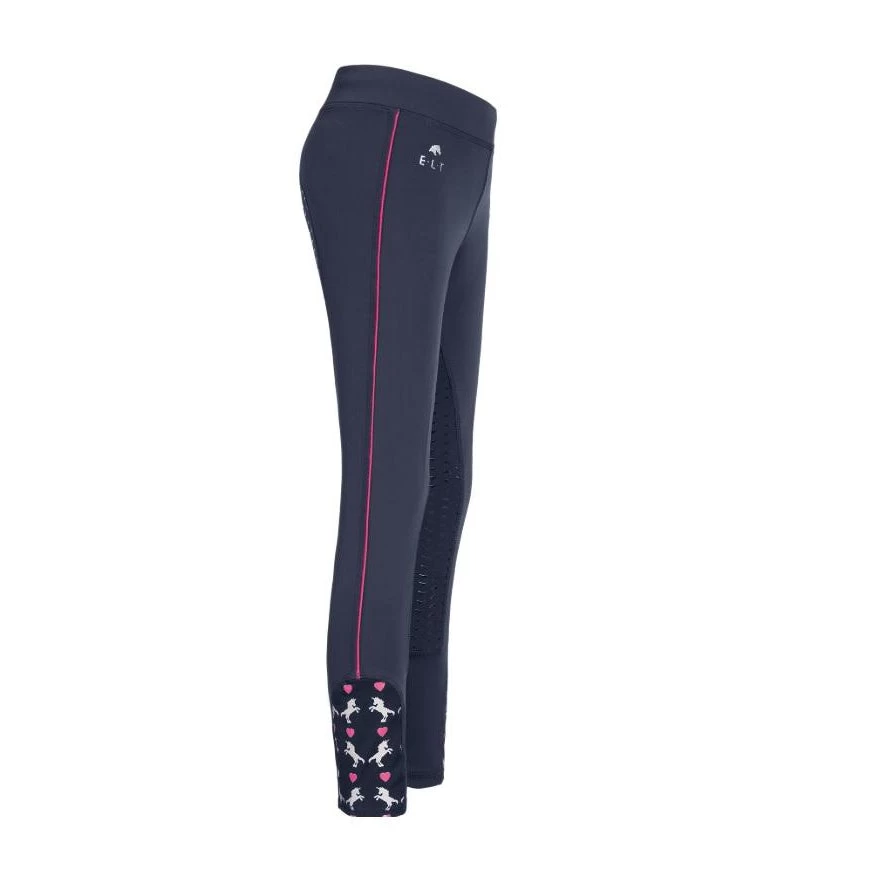 Classic riding leggings in soft stretch material with fashionable elastic cuffs with motif print.