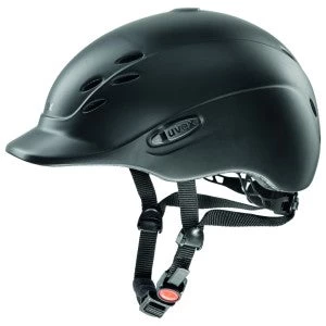 The Uvex Onyxx kids riding helmet is specifically designed for children and teenagers. The Uvex Onyxx helmet is extremely lightweight and offers outstanding ventilation. The three dimensional adjustable sizing system, IAS 3D, enables the helmet to fit virtually any head shape with easy fine tuning by way of a single dial situated at the back of the helmet. In addition the Uvex monomatic comfort closure allows for the helmet to be opened and closed with one hand & the chin strap offers multi-level adjustment. The helmet meets the highest safety standards with the hardshell construction created by using a specialised inmould technology. During this process the protective EPS material is foamed directly into the polycarbonate shell. This creates a helmet with the highest level of impact resistance, enabling it to effectively absorb the impact. Uvex Helmets comply with VG1 01.040 2014-12 Safety Standard, making them suitable for training or competition use.