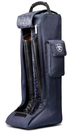 This is a bag that will treat your boots with the utmost care when transporting them. It has a divider, a double zippered entrance, and a handy outside pocket, all of which allow you to carry spurs and other accessories.
