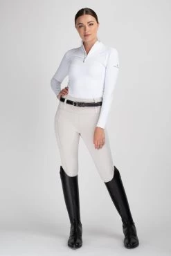 Flattering, stretchy and super smart pull on breeches that will take your competition and everyday riding wear to the next level. Featuring premium non see through fabric treated with a unique finish to prevent UV rays penetrating through the fabric weave reflecting the rays for SPF 40+ sun protection and to reduce heat absorption. Â