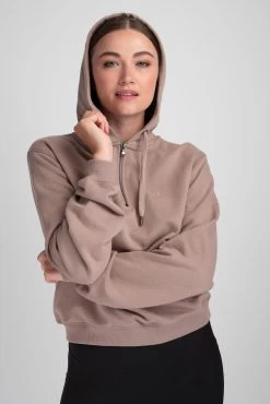 This stylish hoodie is made from a lightweight 100% cotton fabric with a half zip, subtle tonal logo and branded eyelets.