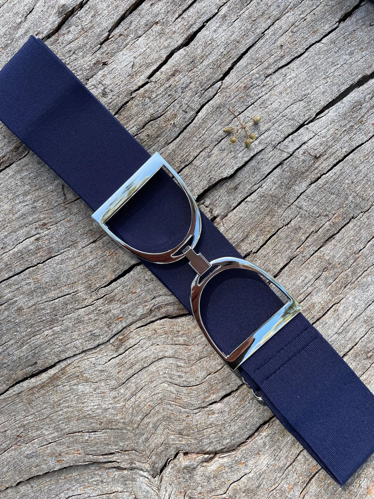 One size fits most with an easily adjustable slider. Available in stylish navy with silver stirrup.
